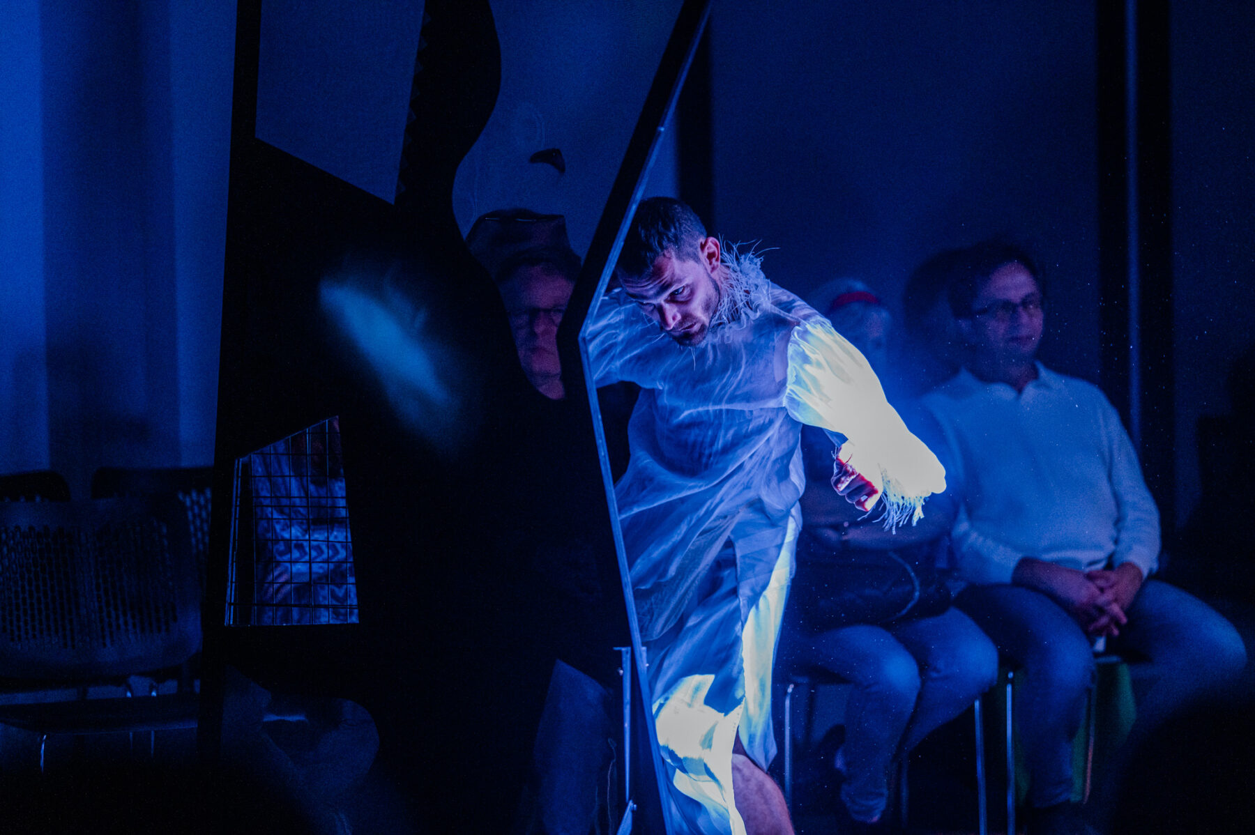 ERROR 404 – performatywne działanie w technice butoh – rozsadza granice, zawiesza normy i prowadzi w liminalną przestrzeń, gdzie różnice spotykają się, odbijają od siebie, prowokują, czasem ranią. Ciała performerów, pogrążone w półmroku, stają się pulsującą mapą stanów wewnętrznych, a każdy ruch jest śladem, który znika i natychmiast powstaje na nowo.