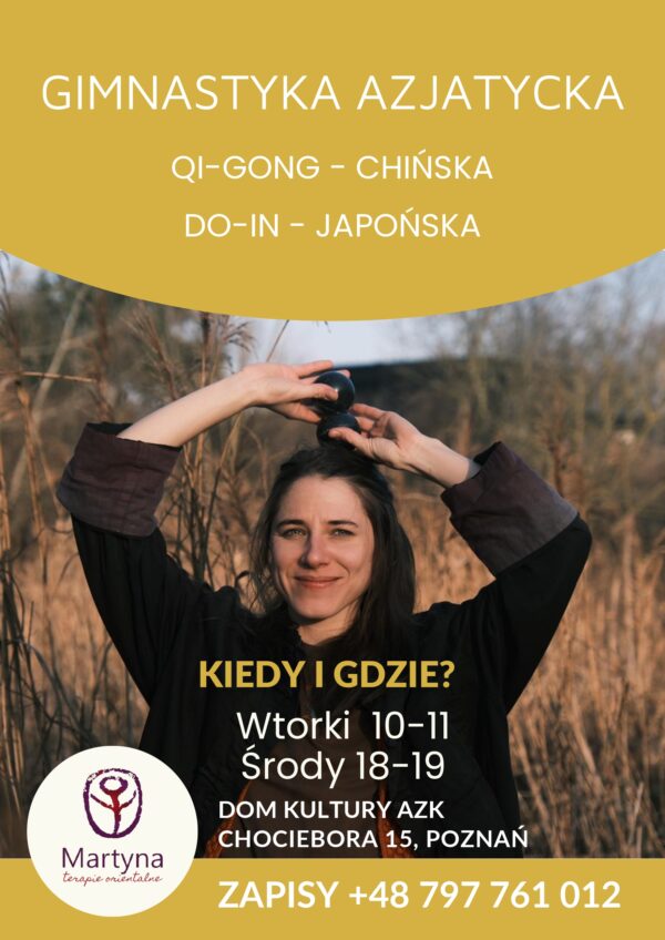 Jestem instruktorką Qi-Gong – gimnastyki chińskiej oraz terapeutką manualną/masażystką w specjalności masaży japońskich – Shiatsu.