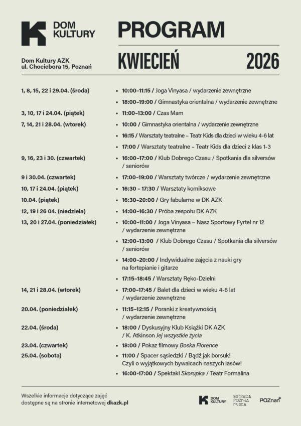Kwiecień w DK AZK — Dom Kultury Antoninek-Zieliniec-Kobylepole